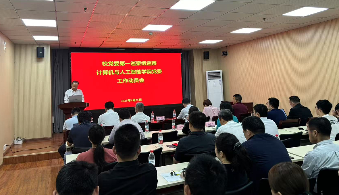 根据学校第四届党委第三批巡察工作统一部署,4月25日,校党委第一巡察组巡察计算机与人工智能学院党委工作动员会在学海楼510报告厅召开。校党委副书记、纪委书记夏江敬提出工作要求。巡察组组长王年军作动员讲话,计算机智能学院党委书记陈采军作表态发言,计算机智能学院院长郑渤龙主持会议。巡察组副组长关帅锋及巡察专员李凡、赵万春、杨光萍,纪委副书记兼纪委办公室主任兼党委巡察工作领导小组办公室主任汪星刚,学院领导班子成员及全体教职工、退休教师代表和学生代表参加会议。