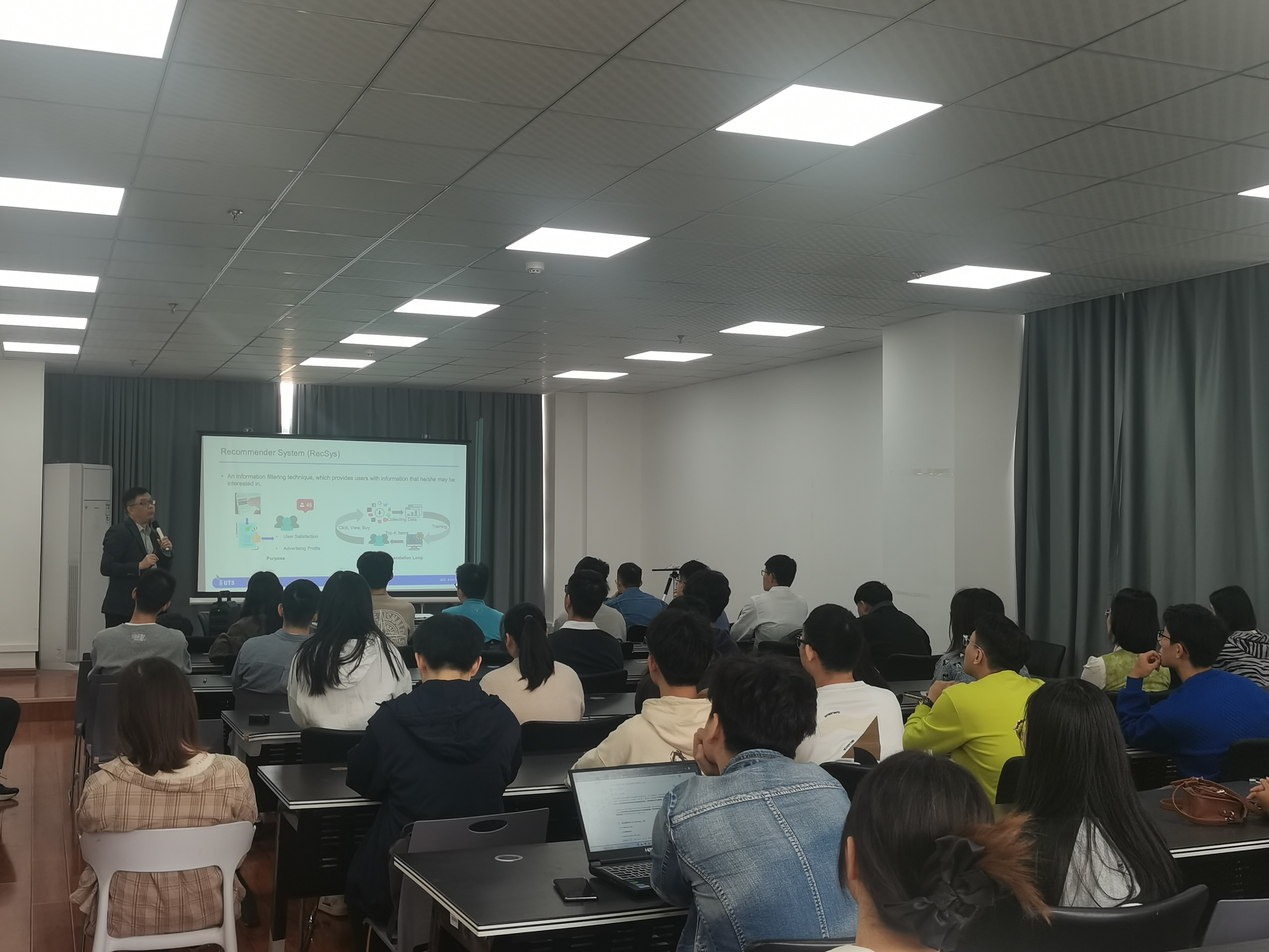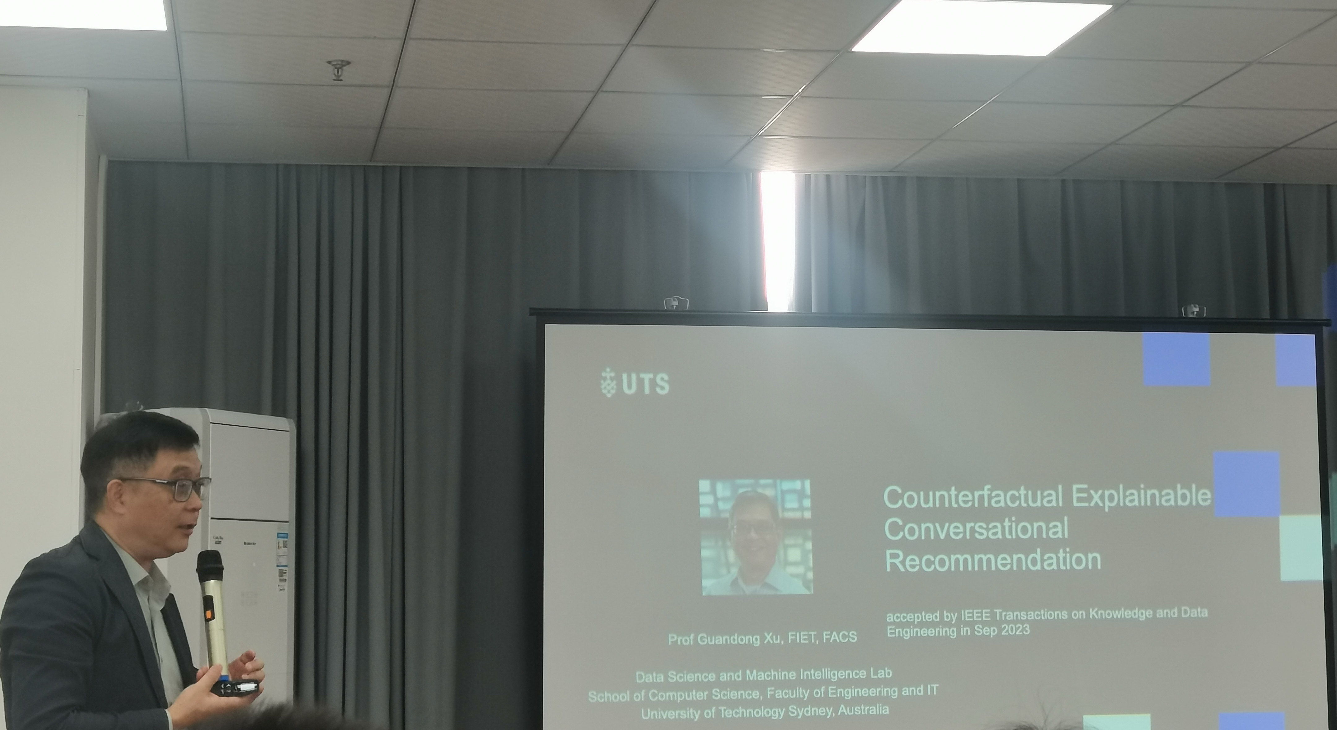 10月8日上午,悉尼科技大学徐贯东教授应邀于计算机与人工智能学院开展了“Counterfactual Explanations in Conversational Recommender System”(对话式推荐中的反事实解释)的专题学术交流。讲座在学海楼510报告厅举行,由李琳教授主持,学院100余名研究生参与学习。