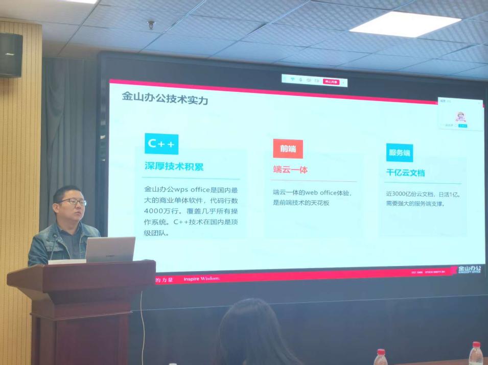 随后,金山办公技术委员会专家武海涛详细介绍了课程内容及考核制度。训练营课程内容聚焦当下互联网通用编程技术,由金山办公架构师共同参与设计,注重动手能力和解决实际问题的能力培养。同时,为提高学习效果,企业技术骨干提供个性化作业反馈,确保培养质量。