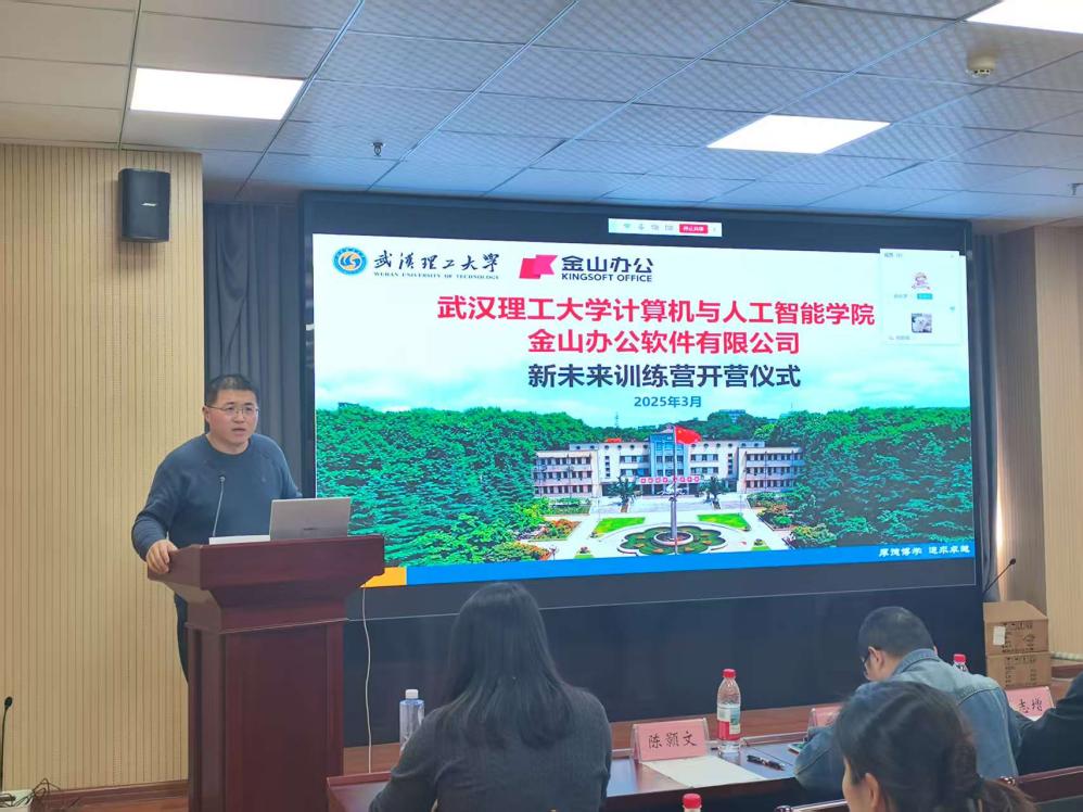 为深化校企合作,培养具备创新精神和实践能力的优秀人才,共同探索创新型数字人才培养新模式,2025年3月21日,武汉理工大学计算机与人工智能学院与金山办公软件有限公司(以下简称“金山办公”)在学海楼510会议室隆重举行“新未来训练营”开营仪式。出席开营仪式的嘉宾有:金山办公招聘总监、研发培训院总监陈志增,研发培训院副总监武海涛,研发培训院C++教学负责人陈颢文,招聘经理赵志梦;武汉理工大学计算机与人工智能学院副院长石兵,实验教学与技术研究中心副主任王云华,辅导员牟颖等。双方领导共同为训练营揭幕,见证校企合作新篇章的开启。