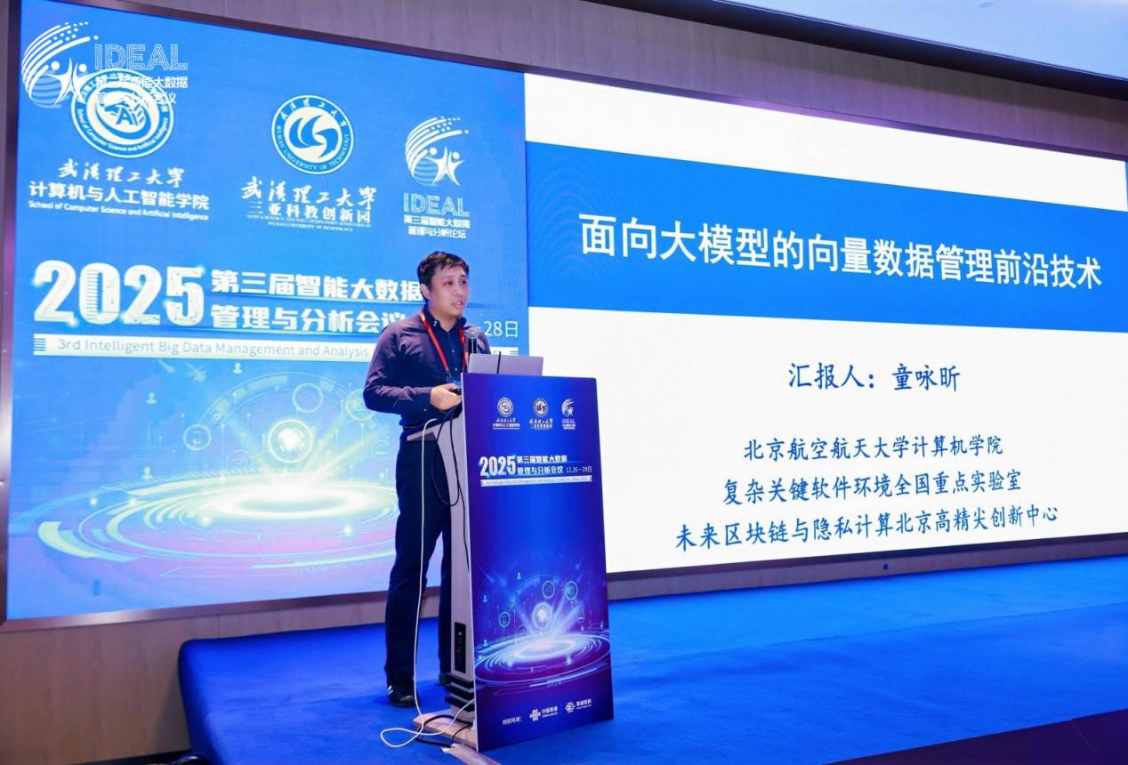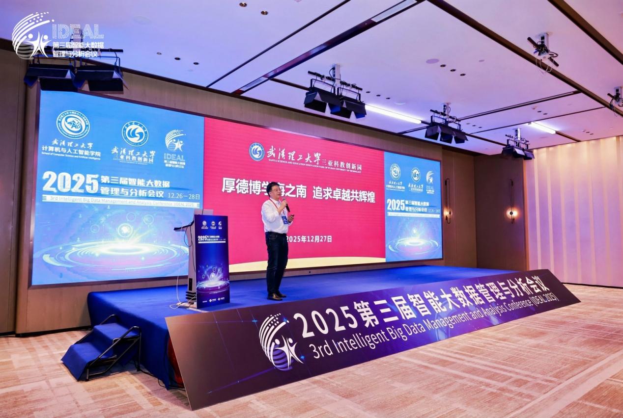 2025年12月26日-28日,第三届智能大数据管理与分析会议(IDEAL 2025)在海南省崖州湾科技城成功召开,本次会议由武汉理工大学主办,以“人工智能和大数据赋能交叉学科研究”为主题,汇聚了来自清华大学、浙江大学、上海交通大学、华东师范大学、北京航空航天大学、北京理工大学、北京邮电大学等全国知名高校及科研机构的近百名专家学者,与会代表共同探讨了智能大数据管理在化学、育种、太空算力等多个前沿领域的最新研究进展与未来趋势。
