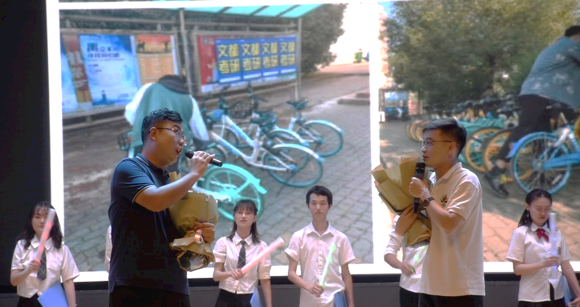 最后,晚会来到最后一篇章:“扬帆远航”。歌舞《想见你》、乐器演奏《时间煮雨》、串烧《仲夏夜之花》都让现场的观众不禁合唱出声,“我们说好不分离,要一直一直在一起”也是每位毕业生的肺腑之言。在男团舞《run away from fake love》的热烈表演后,朗诵《理工日历》又将同学们带入回忆,一千多个日夜的朝夕陪伴将永远定格在我们心上,就此别过我的恩师、朋友、武汉理工和我的青春。最后,辅导员邓佳和周豪义老师带来了歌曲《这世界那么多人》,合唱的欢快和离别的悲伤交杂,让现场气氛再次达到高潮。